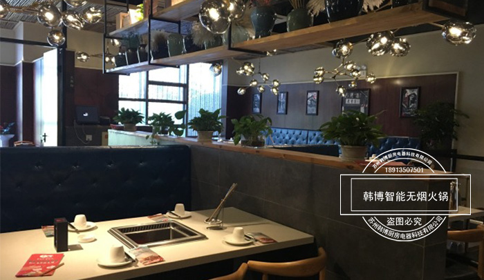 香天下裝修風(fēng)格典雅,頗有風(fēng)韻。因選用了韓博智能無煙火鍋設(shè)備-韓式高檔大理石無煙火鍋?zhàn)捞厣藉仯櫩驮谙硎苊朗硶r(shí)再也無需擔(dān)心油煙味彌漫。