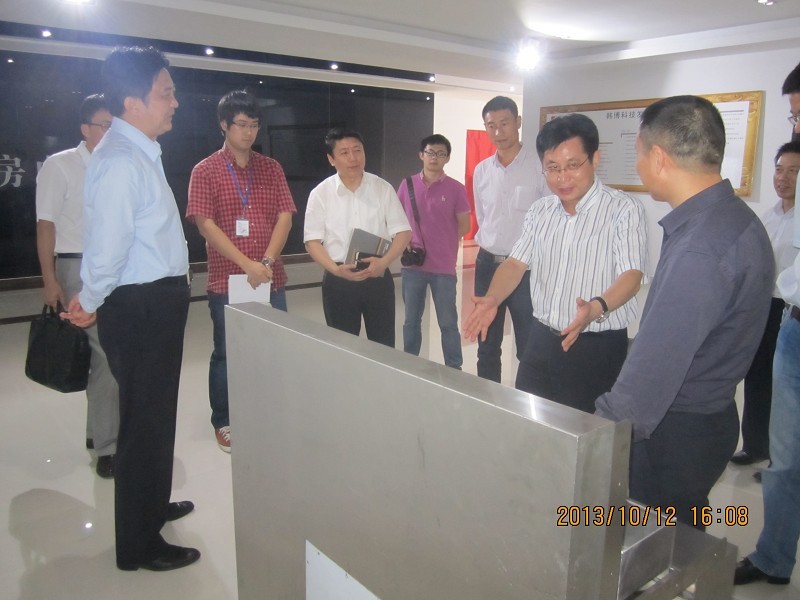 2013年10月12日下午兩時許,蘇州市徐明副市長陸偉躍秘書長越溪街道辦主任一行來韓博調研。在韓博董事長韓躍國、總經理侯鵬博、總工程師錢海榮的陪同下,徐副市長一行了解了韓博現在生產及銷售、以及未來發展方向的概況。