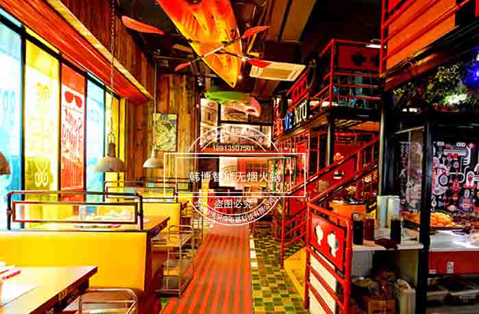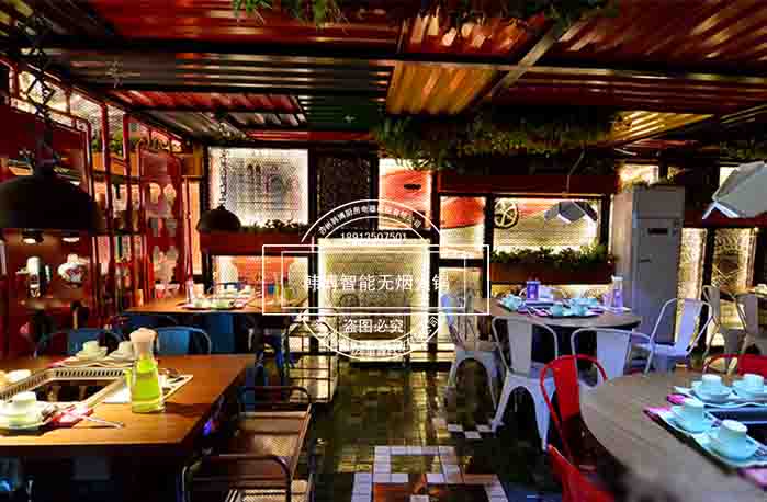 店內(nèi)采用許多年輕元素,時(shí)尚活力涂鴉,餐廳處處充滿趣味格調(diào)和時(shí)尚新鮮感,給顧客營(yíng)造一種輕松愉快的環(huán)境。在這吃火鍋你不用擔(dān)心油煙味,因?yàn)樗x用了韓博智能無(wú)煙火鍋設(shè)備,節(jié)能、安全、高檔、環(huán)保,油煙去除率高達(dá)99%。